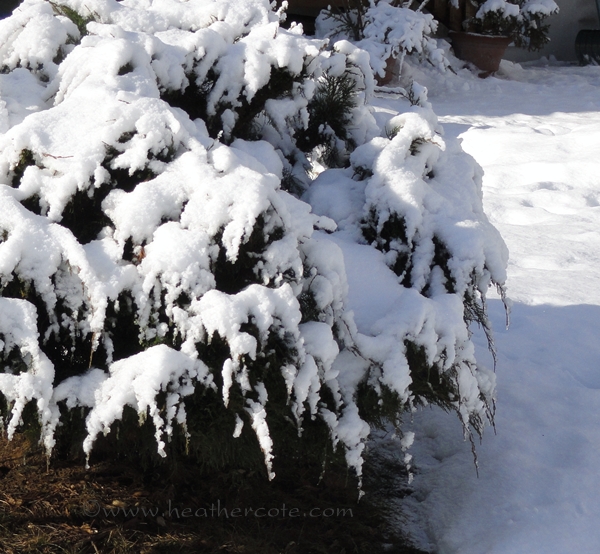 both the photo above and below is a house I walk past almost daily…the trees and shrubs are gorgeous any season of the year but extra specially pretty when laden with snow…
