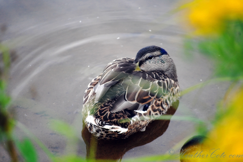 I saw three female ducks sitting on the rocks last Saturday just like this…I had to take a photo of this lady as she actually looks angry! apparently ducks do this to keep warmer…