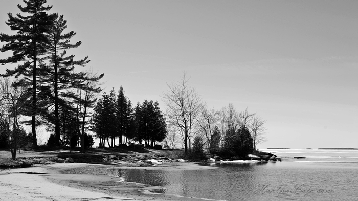this is one side of Sunset Park point…before all the ice was gone…I thought the b & w made this shot look rather interesting…
