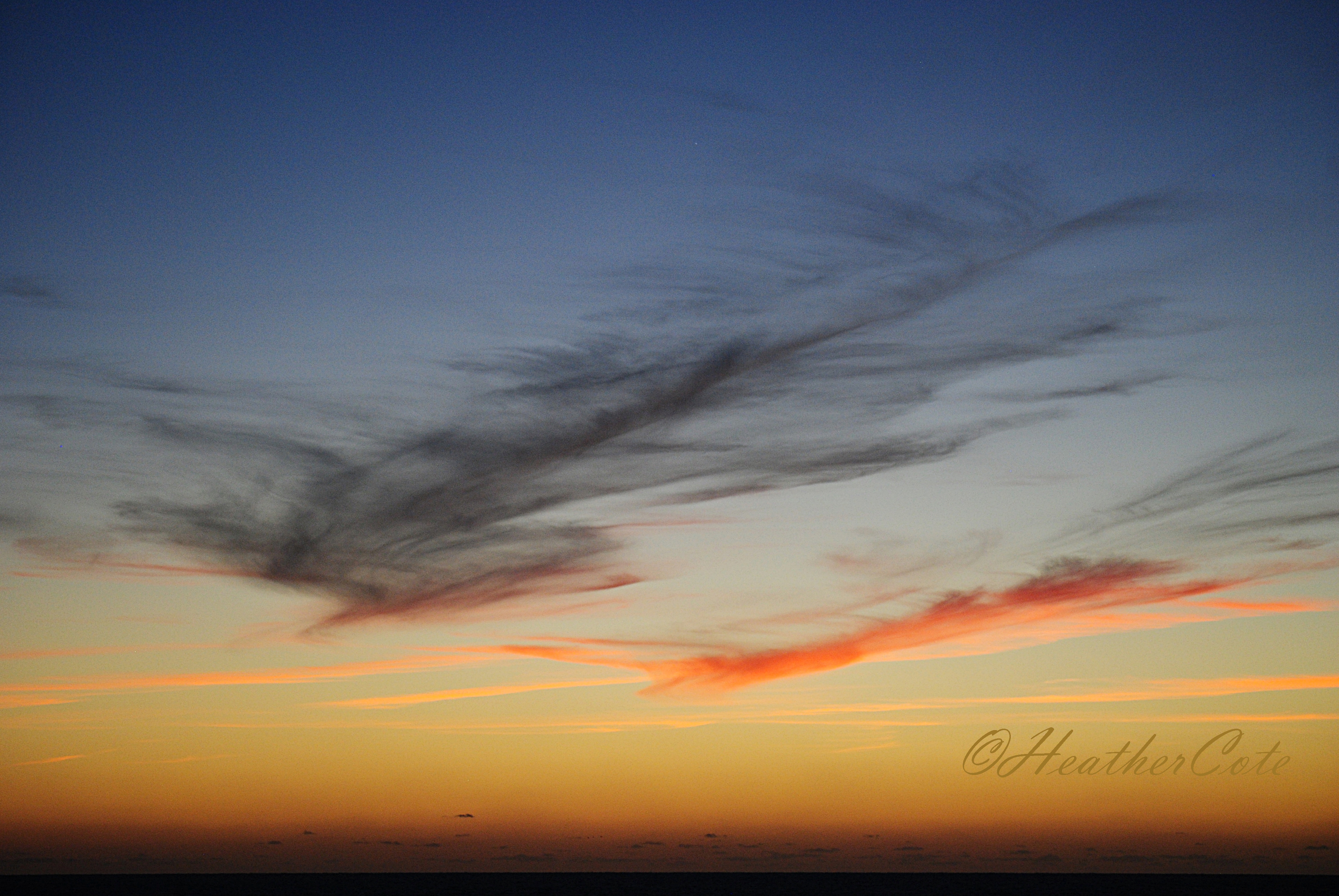 when your condo is facing west it is difficult not to be obsessed with sunsets or the after glow…here are two more photos…I particularly liked the contrast between the dark wispy cloud and the colorful one!