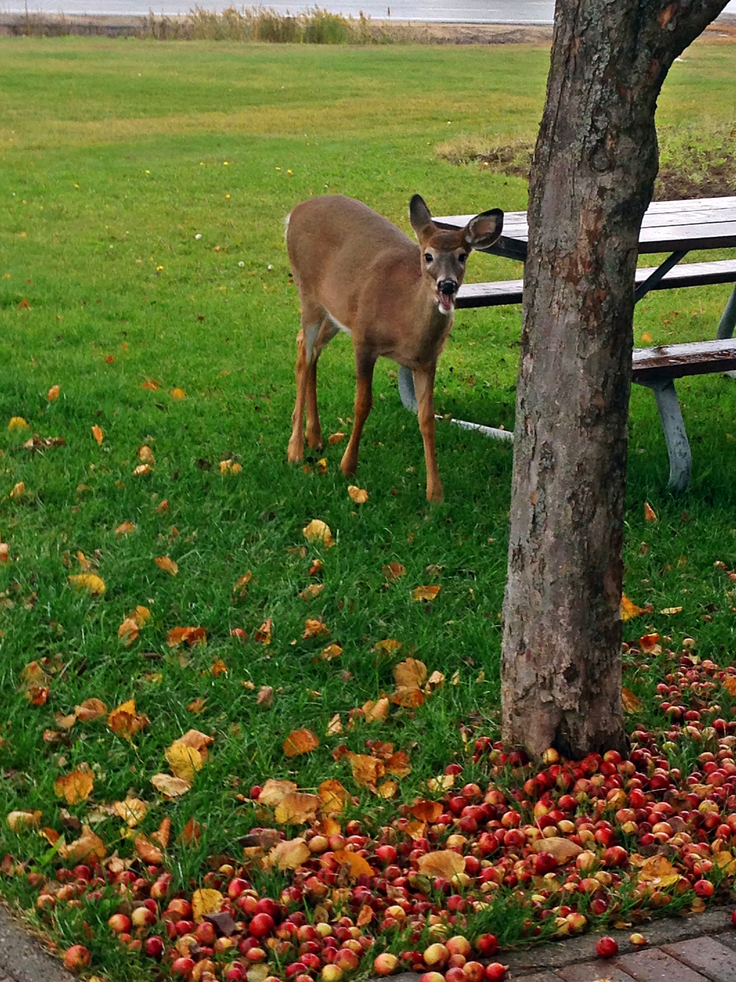 He was munching on the Crab-apples at the base of the tree, scroll down!