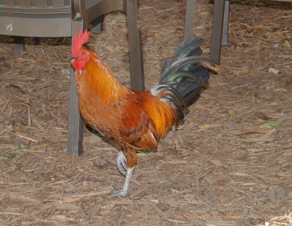 this is at “Blue Heaven Restaurant” Key West…it is and out door restaurant and as you can see they have Roosters who I think live there… as I’ve never been to the restaurant with out seeing these fellows…this time there were moms and their chicks as well…I’ll post photos of them later…this wouldn’t fly here in Canada…