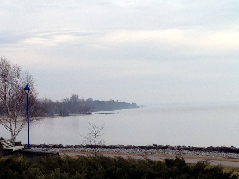 The majority of snow is gone…for now… but we are left with ice build up along the shore line…this has been such a strange fall weather wise. I know we aren’t the only place to experience such unusual weather patterns, just stating a fact. This was taken around 4:30pm yesterday…it was foggy over the water but not so much over the land, made for interesting photos.