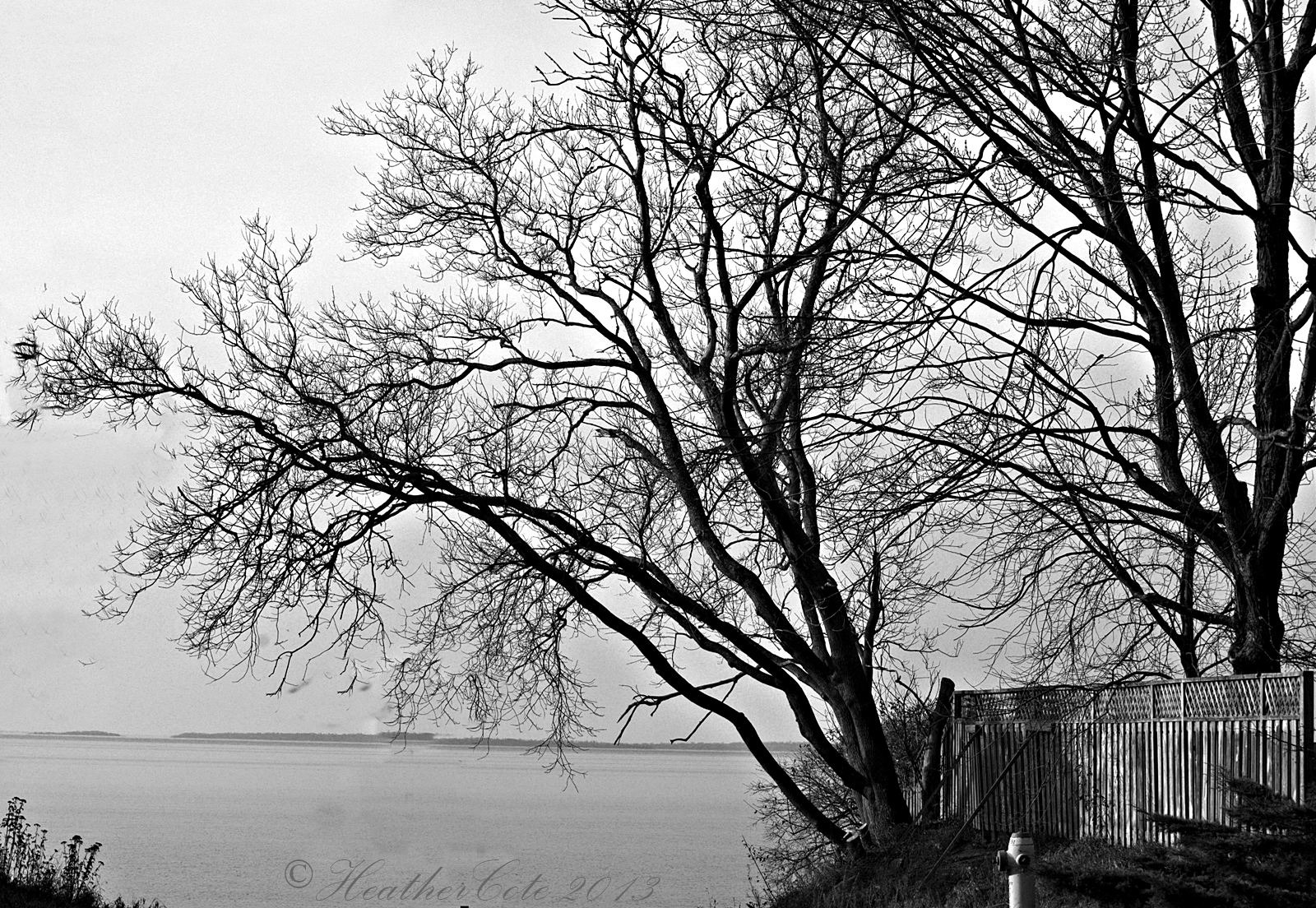 I spotted this yesterday afternoon…not sure what it is all about as I don’t visit this area much…I was up a slight embankment and couldn’t walk down to look at the plaque beside it as the snow was too deep. I’m thinking it is some kind of beacon, totem pole, but honestly don’t know what or why it is there. I will find out eventually. The triangular shaped top looks like green glass. I did it in black & white as some areas of the snow and clouds were just too blue and I couldn’t eliminate it in Photoscape…notice the ridges behind it, they are all along the shore line but the rest of the ice as far as the eye can see looks fairly smooth…I’ve not heard if the ice is safe enough to venture out but I did notice a number of people taking ice huts out so I’m hoping so!