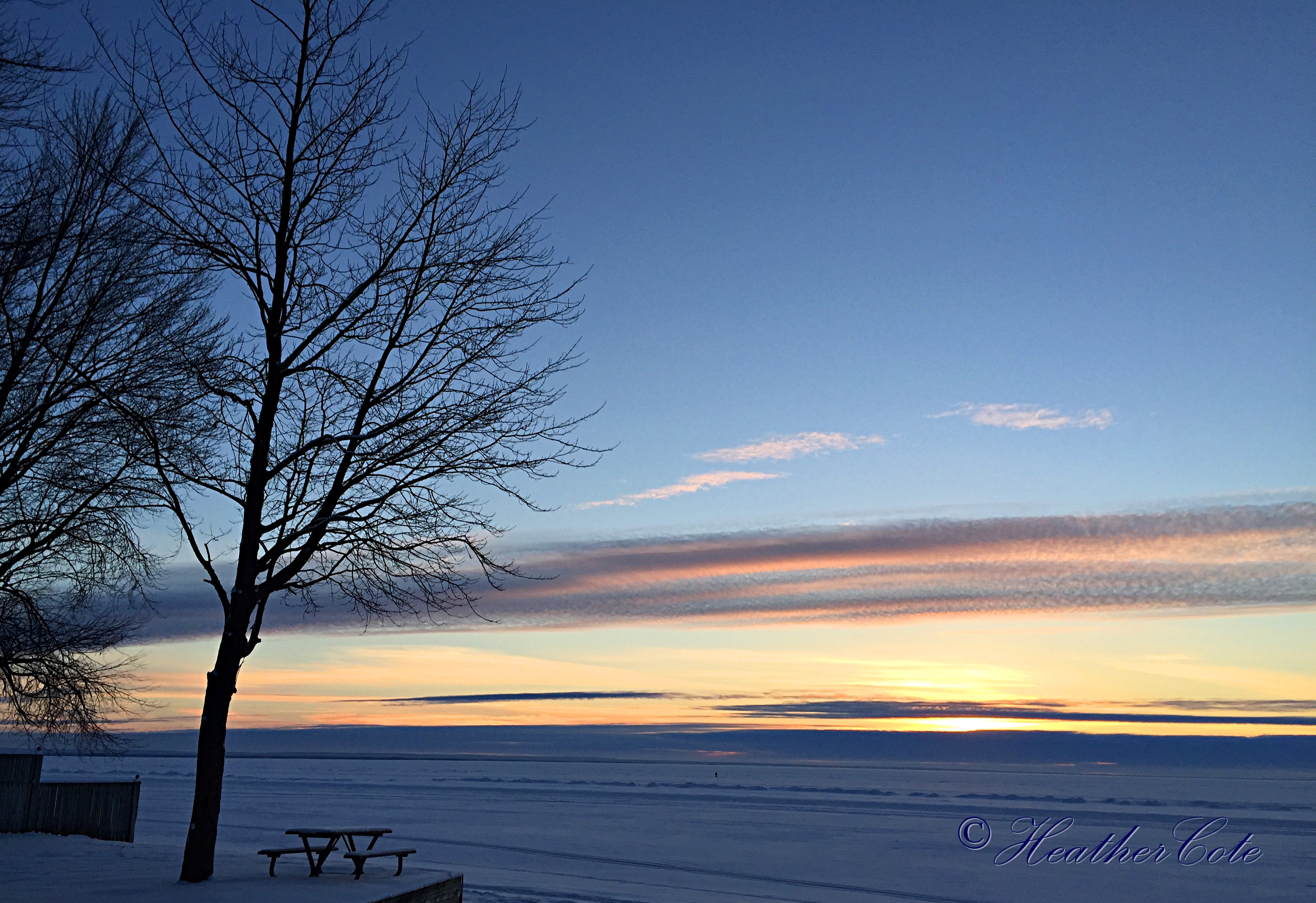 It is interesting how I’ve not seen the sunset for months and recently I’ve been able to capture it three times..awesome! This one wasn’t as intense as some, but then it was just setting, I find the colors more vibrant a short while after the setting…didn’t stay around to see what happened that night as I wasn’t dressed warm enough!